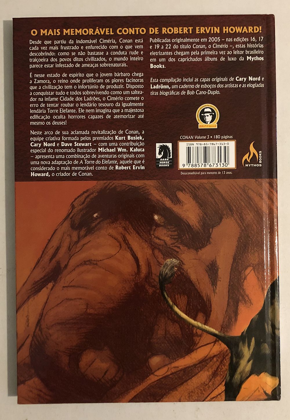 CONAN A Torre do Elefante – Editora Mythos (2018 – 1ª Edição), formato americano (19x28cm). Colorido, lombada quadrada, encadernado – capa cartonada. Edição Única