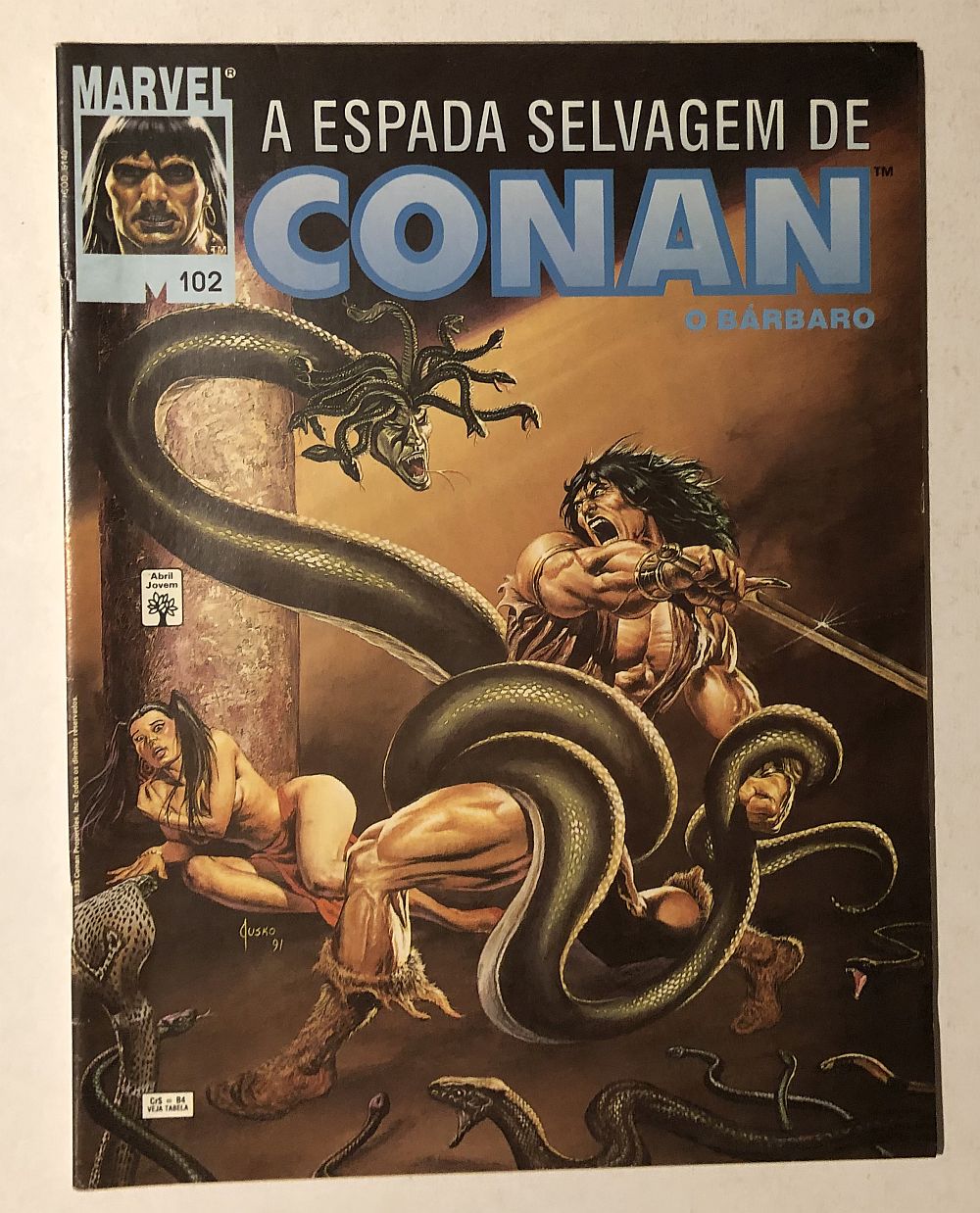 Espada Selvagem de Conan Nº 102 – Editora Abril, lançada em 05/1993, formato magazine (21×27,5cm).