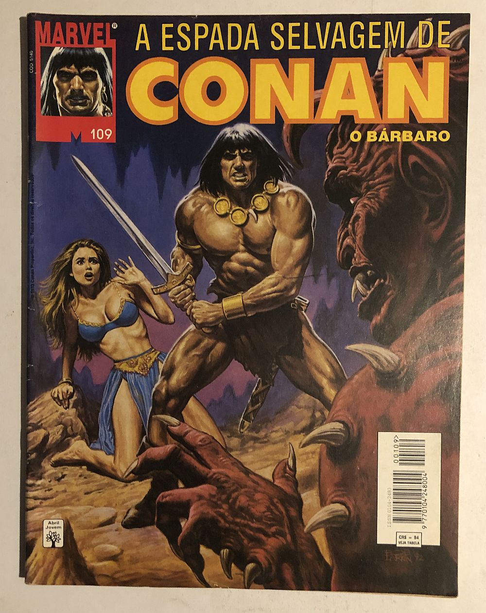 Espada Selvagem de Conan Nº 109 – Editora Abril, lançada em 12/1993, formato magazine (21×27,5cm).