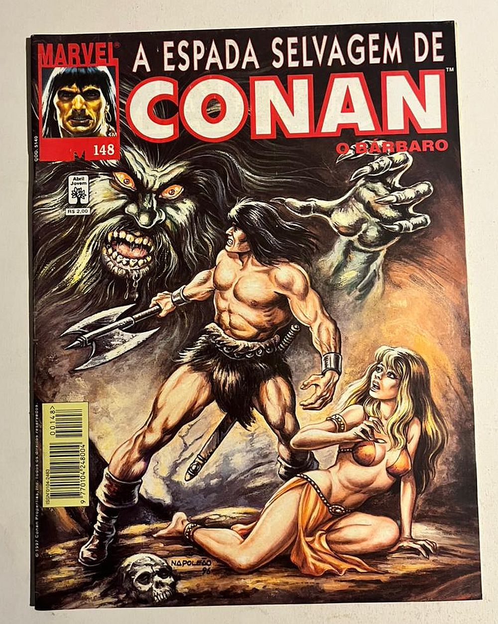 Espada Selvagem de Conan Nº 148 – Editora Abril, lançada em 03/1997, formato magazine (21×27,5cm).