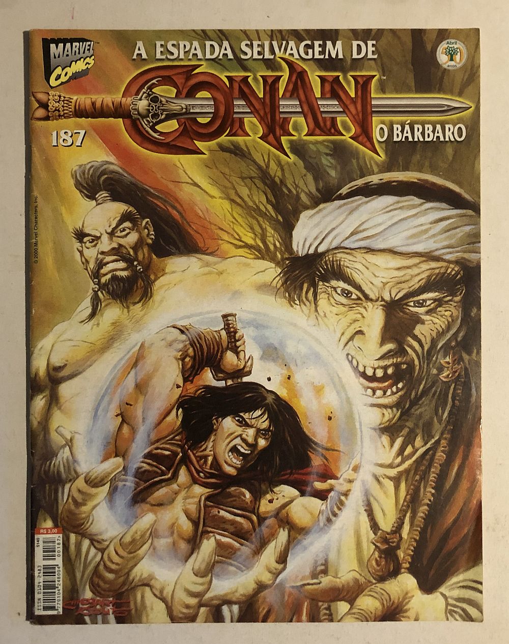 Espada Selvagem de Conan Nº 187 – Editora Abril, lançada em 06/2000, formato magazine (21×27,5cm).