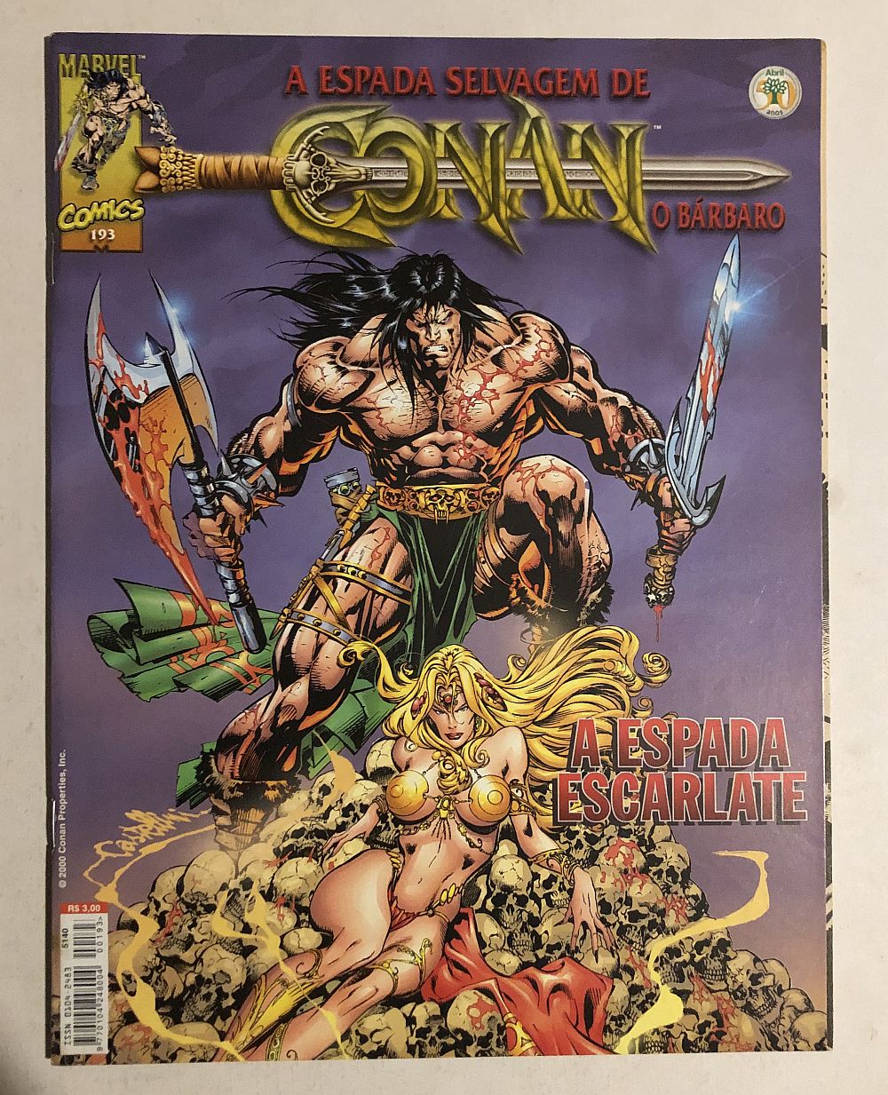 Espada Selvagem de Conan Nº 193 – Editora Abril, lançada em 12/2000, formato magazine (21×27,5cm).