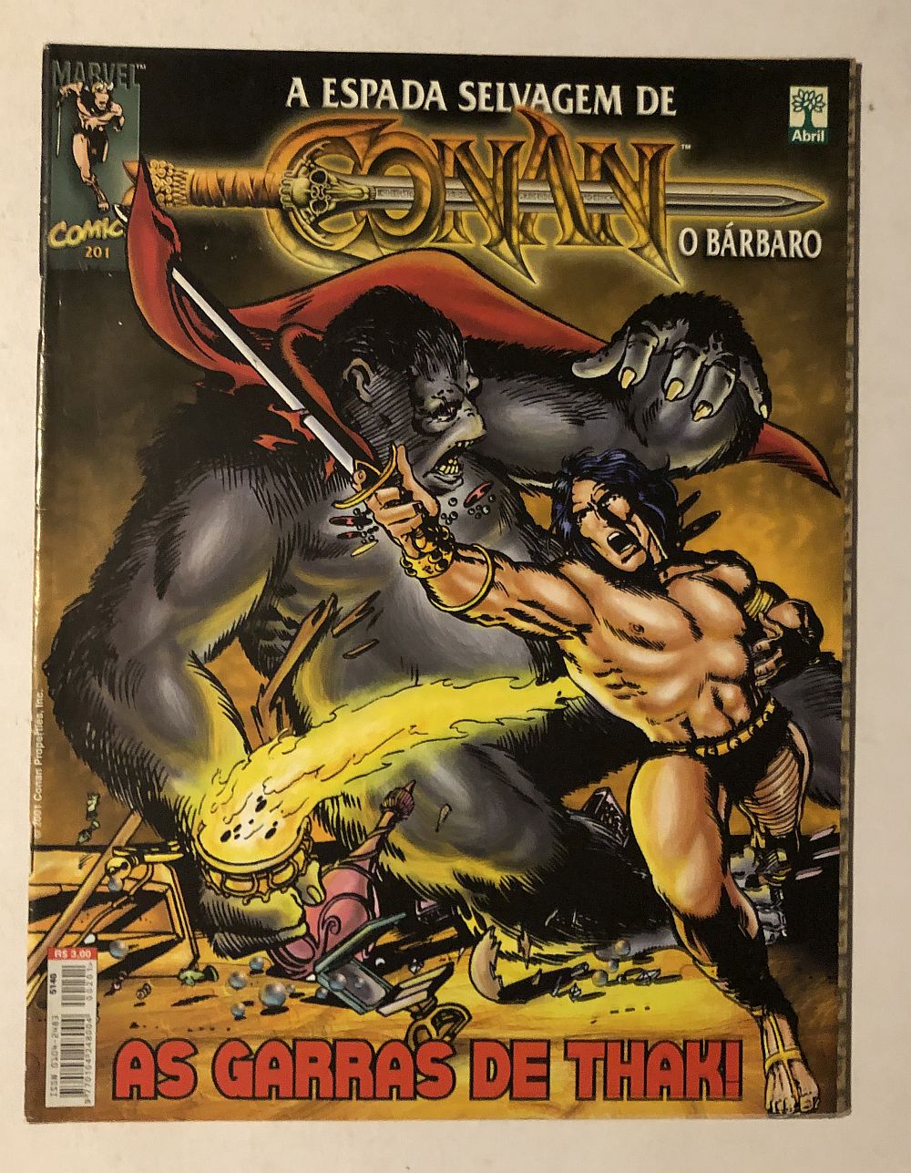 Espada Selvagem de Conan Nº 201 – Editora Abril, lançada em 08/2001, formato magazine (21×27,5cm).
