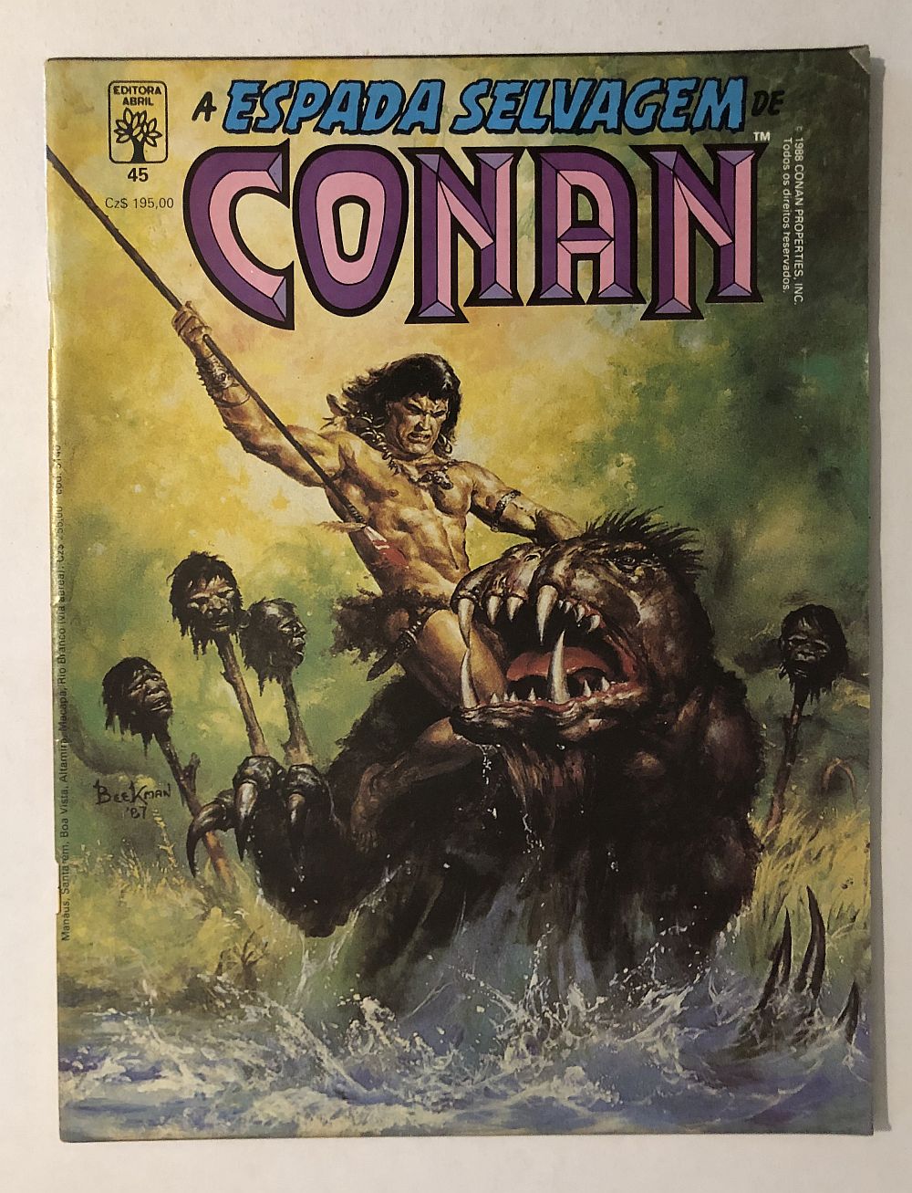 Espada Selvagem de Conan Nº 45 – Editora Abril, lançada em 06/1988, formato magazine (21×27,5cm).