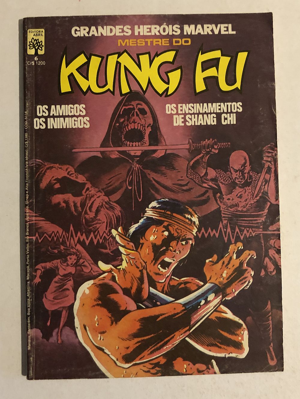 GRANDES HERÓIS MARVEL Nº 06 – Mestre do Kung Fu – Editora Abril (11/1984), formatinho (13,5×19 cm). Lombada quadrada.