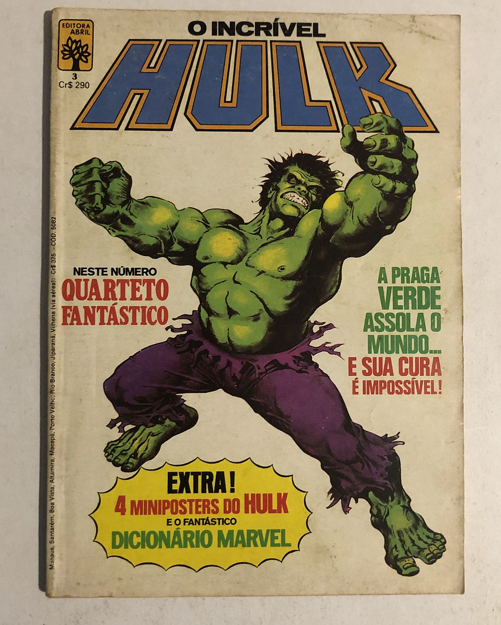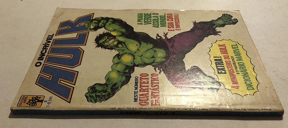 O INCRÍVEL HULK Nº 3 – Editora Abril (09/1983), formatinho (13,5×19 cm). Lombada quadrada. Não contem página do dicionário marvel nem brindes.