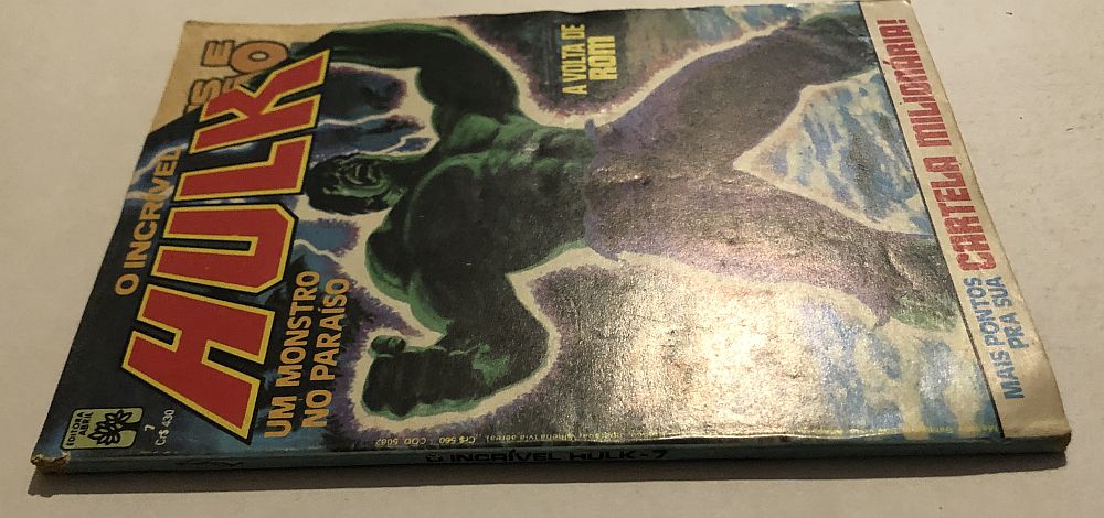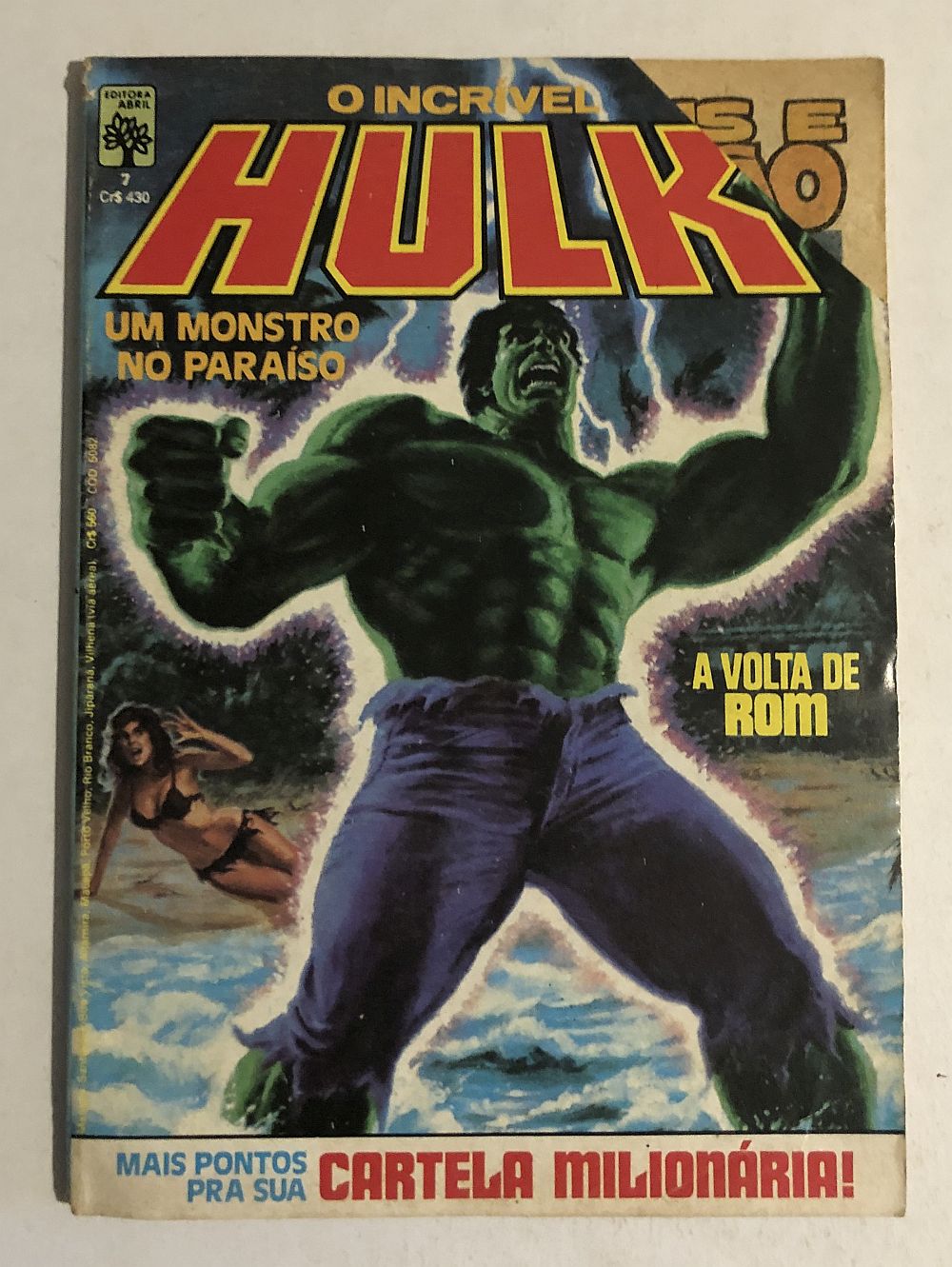 O INCRÍVEL HULK Nº 7 – Editora Abril (01/1984), formatinho (13,5×19 cm). Lombada quadrada. Não contem página do dicionário marvel.