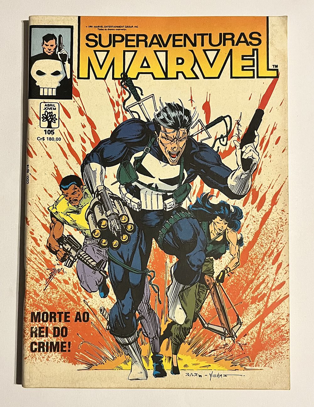 SUPERAVENTURAS MARVEL Nº 105 – Editora Abril (março de 1991), formatinho (13,5×19 cm). Lombada com grampos.