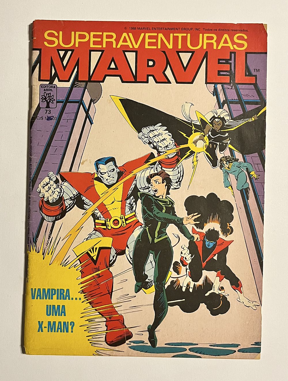 SUPERAVENTURAS MARVEL Nº 73 – Editora Abril (julho de 1988), formatinho (13,5×19 cm). Lombada com grampos.